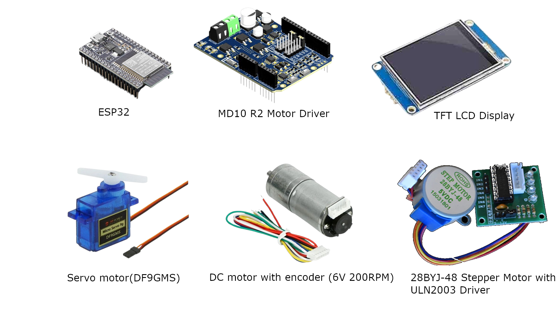 Process: - The DC motor responds to PWM signals by adjusting its rotational speed and direction. - The servo motor moves to the target position based on pulse-width control. - The stepper motor rotates in discrete steps according to the step and direction signals